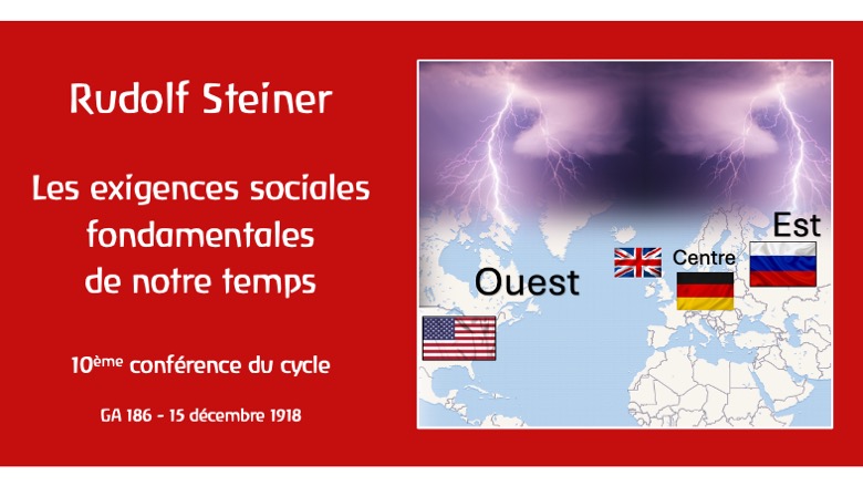 Les forces chez l'humanité de l'est - du centre - de l'ouest. L'homme tripartite vit dans le monde. Le protestantisme à l'ouest, à l'est et au centre. Les idées de liberté - égalité - fraternité. Différence entre le mouvement anthroposophique et les autres mouvements.